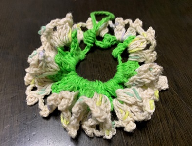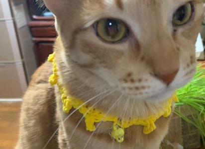 ★ねこの首輪、フリフリバージョンも試し編みしました。フラットさんちのねこちゃん、フリフリががめちゃお似合いです。おひめさまみたい。 それならとあんどらにも編んでみたのですが、男子にはいまいちです。 シロップは華奢なので、重い(といってもほんの少しですが)フリフリはむりです。ちなみに、…