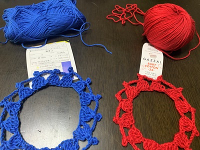 ★手芸屋さんで試しに買った赤い糸は、綿とアクリルが半々です。100円ショップの青い糸はコットン100パーセント。値段5倍差ですが、 ねこの首輪を編むには、そんなに差はないように思います。 100円ショップに、違う色の糸を買い足しに行きました。 ★さくらが、美しいです。 餌付けさ…