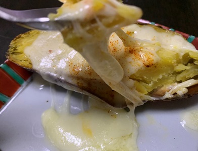 ★おさがりの焼き芋にチーズをかけて、チンしました。グラタンみたいでおいしかったのですが、朝ごはんには少し足りません。 残りのみそ汁に九条ネギと天かすを入れて、おじやにしました。 最近、何かにつけ天かすをよく使うのは、近所のさばずし屋(大岩さん)に、揚げたての天かすをたくさんもらったからで…