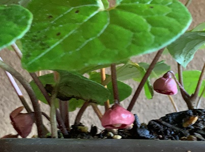 ★下鴨にある宝泉堂に行きました。茶寮になっているのですが、今日は、和菓子を買いに行きました。 店内にかざってある双葉葵は、上賀茂神社のおしるしで、和菓子「賀茂葵」のモデルです。 花がぶら下がるように咲いていました。正確には花ではなく萼片です。 求めた和菓子は、丹波の大納言をハー…