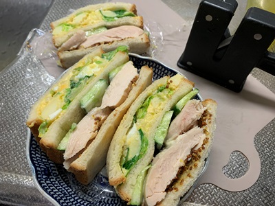 ★4月は、いつもの月よりサンドイッチをよくこさえていたのですが、4月のカレンダーの今月の料理としてサンドイッチをアップしていませんでした。 カレンダーを5月に替える今日になって、気づきました。BLサンドは素材がないので無理でした。もうひとつのチキンとたまごサラダなら、サラダチキンがあるので…