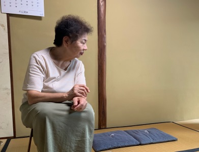 朋子先生は、ひざを痛めて正座ができません。そんな中、けいこありがとうございます。