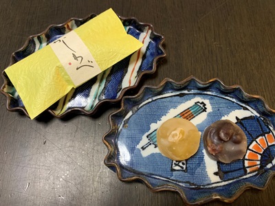 主菓子の亥の子もちの中には、栗と干し柿がとろりと入っていました。