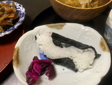キムチ汁を温めている間に、小さなお結びをひとつこさえました。