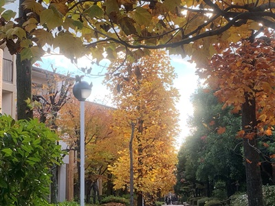 ★今日から連休なので、バスは混みます。キャットフードを買いに行かなければならないのですが、大原から来るバスは、きっと満員でしょう。大通りまで歩き、違う路線のバスに乗り、途中で降りて歩きました。町中の紅葉がきれいです。落ち葉の道も素敵なのですが、掃除、たいへんでなことと思います。昔は、落ち葉を掃き集めてたき火をしている風景を、よく見かけたものですが……。