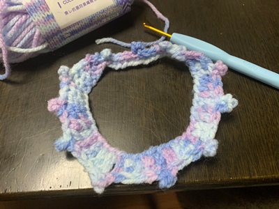 ★部屋の模様替え、大洗濯。その合間に首輪もう一個編みました。段々慣れてきました。首の後ろを細くしました。といってもてきとうです。