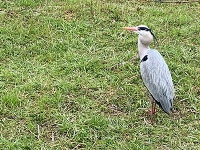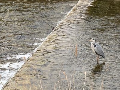 アオサギ、川の中にいるのはかなりのおじいさん。あごひげが長いです。