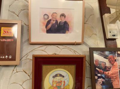 ★昨日に続いて、今日もランチ会でした。中学時代の友だち友だちの店「平安」(町中華)に、6人が集まりました。飾ってある肖像画は、プレバトの日本画指導でお馴染みの野村先生が描かれたものです。この店の常連さんです。