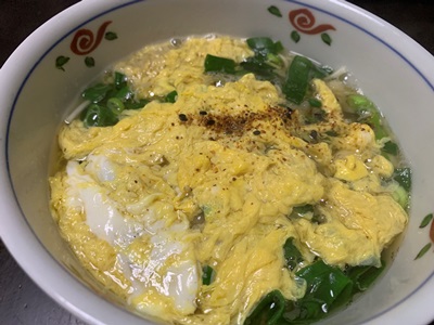 ★朝ごはんを食べてすぐに、お昼は何を食べようかと考えています。今日は、たまごとじうどんにしようかな。たまごのしたには、天かすとネギがたっぷり。