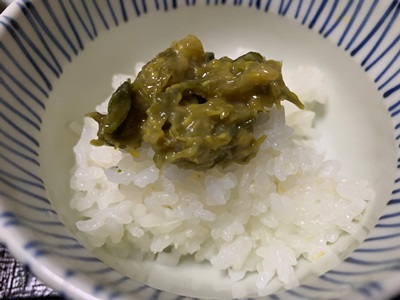 朝ごはん、ごちそうです。ふきのとう、最後のひと匙になりました。