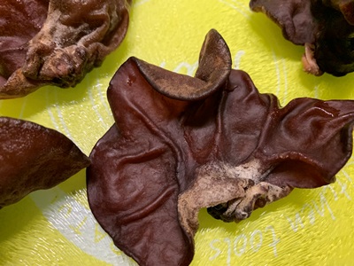木くらげは、豚眠Ð、鉄分、カルシューム、食物繊維がたっぷりだそうですが、見た目はコウモリみたいです。