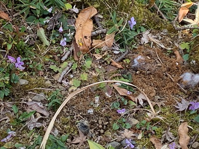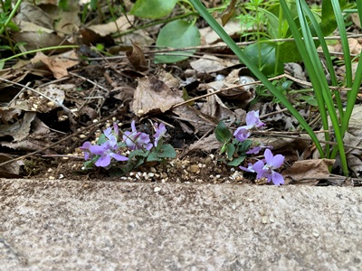 庭一面、すみれが咲いていました。邪魔な個所のすみれは引き抜いて捨てたというので、それならと分けてもらいました。ベランダ、日当たりがよくありません。根付いてくれますように。