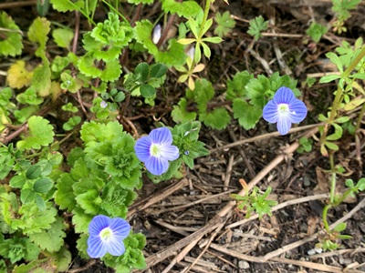 上からツタバウレラン、スズメのエンドウ、カラスのエンドウ、おおいぬのフグリ。クワガタ草の写真、消してしまいました。