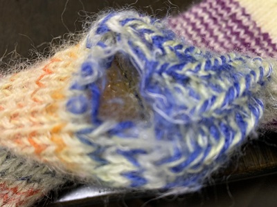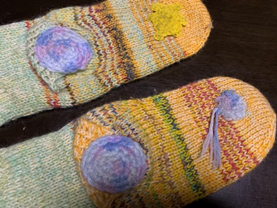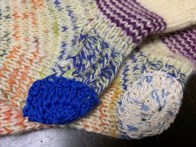 ちなみに、前に継当てしたソックスも、ごきげんで履いています。