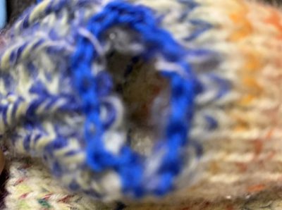 伝染しないように細編みで目を拾ってから、