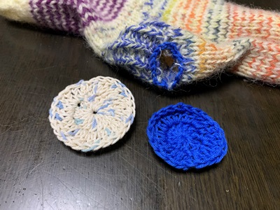 小さな当て布を編み、