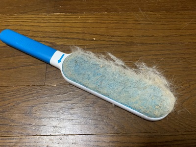 今や、ねこの居場所になっているこたつの掛け布団には、抜け毛がすごいです。でも大丈夫です。一定方向にさっと撫でると、たちまち取り除ける魔法のブラシがあります。