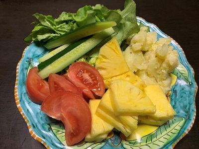 ご近所さんがおすそわけしてくれたパイナップルもサラダに入れました。