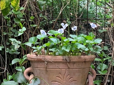 ベランダの放置していた鉢に、スミレが咲いていました。たくさんあったスミレの鉢も、今はこれだけに。