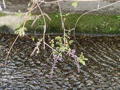 ★藤の花も咲き始めました。最盛期にはこの川には、たくさんの藤が垂れ下がります。楽しみです。