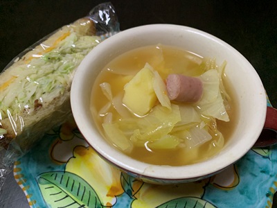 ★うーがは、ちりめんじゃことほうれん草とたまごのチャーハンを食べて出かけました。わたしは、うーがを見送ってから、たことほうれん草とたまごのチャーハン。朝こさえた野菜スープのお残りは、お昼にも食べました。