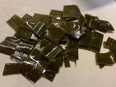 ★米ぬかは、食物繊維、ビタミンB群、ミネラル、抗酸化成分など豊富な栄養素を含むスーパーフードです。ぬか床に入っていた昆布はその栄養を吸っています。また、酢レンコンの昆布は、血圧やコレステロールの改善、腸内環境の整備、血流促進、免疫力向上など多方面で健康効果があるそうなので、捨ててはもったいないです。それぞれサイコロ大に切って、佃煮にしました。