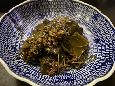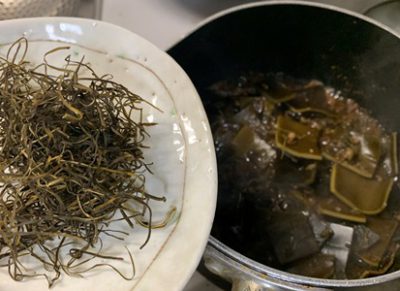 ちりめんじゃこ、山椒の実のほかに、五辻で買った糸昆布を加えました。