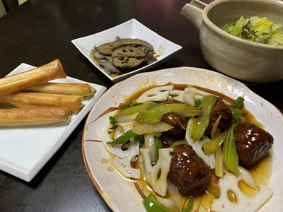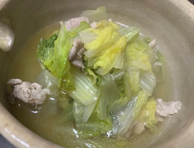 ★晩ごはんは、うーがの大好きな白菜と豚肉の炊いたん。ミートボールは、