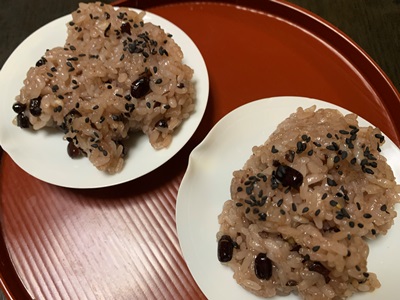 今日のお供えは、お赤飯です。特におめでたいことはないけれど、強いていえば、おさがりを食べるのは、おめでたい人(わたし)です。