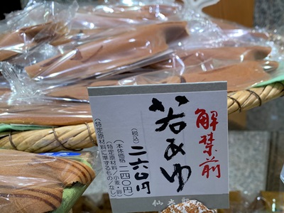 ★お供えは、柏餅(白みそあん)にしようと思って並んでいたのですが、「解禁前」という表示のセンスにメロッときて、若あゆにしました。筆跡も素敵です。