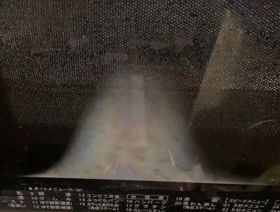 メニューの中の「脱臭」をクリックすれば、白い曇りは消えることを知りました。メニューを使って調理したことはないので、「脱臭」という項目があることすら知りませんでした。