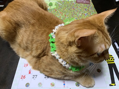 ★ねこたちは、乗っ取り犯です。ウオーリ―を探そうとカレンダーを広げたとたんに、やってきてどかりと座りました。気のすむかまで、どうぞ、どうぞ。